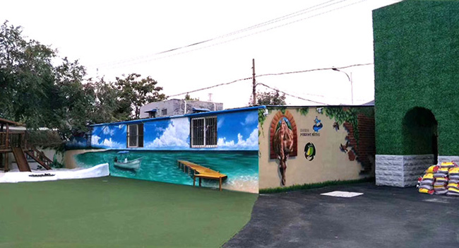 手绘墙是利用丙烯颜料结合手绘画师,参考手绘设计图来完成的彩绘墙项目。3D手绘墙的亮点在于它具有立体透视的效果,在手绘画面结束后和以逼真的展示画面内容,镜头下的画面犹如真是场景,可以供人拍照互动,展示效果以假乱真。