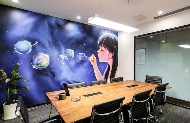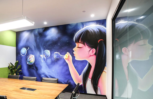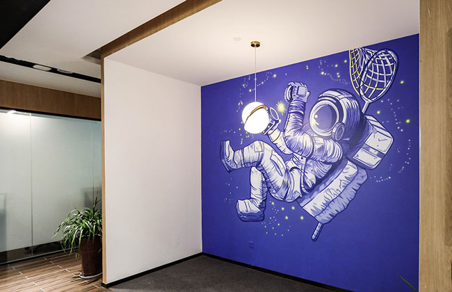 咖啡馆彩绘墙——自带饭勺的小鸟