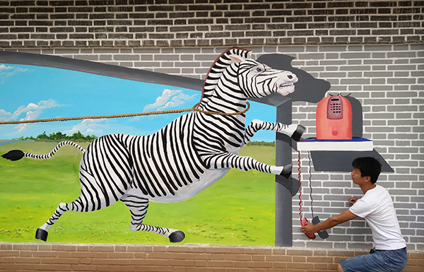 墙绘无须动用太多的人力。由一两个画师精心绘制而成。且用时不长,不会耽误工期。